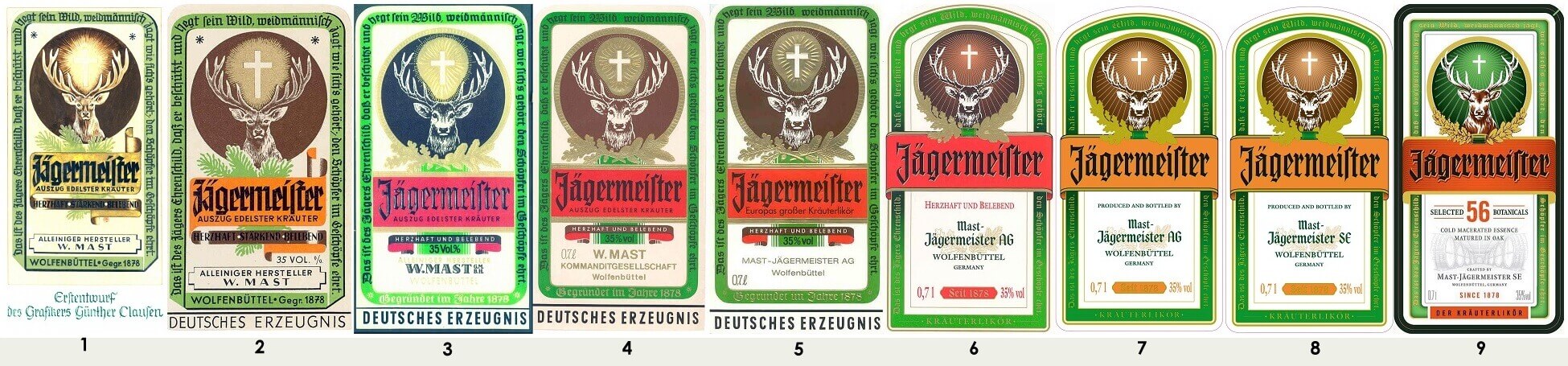 Poniżej przedstawiam zbiór etykiet Jagermeistera, które od 1934 roku po dziś dzień widniały na butelce tego wspaniałego likieru: